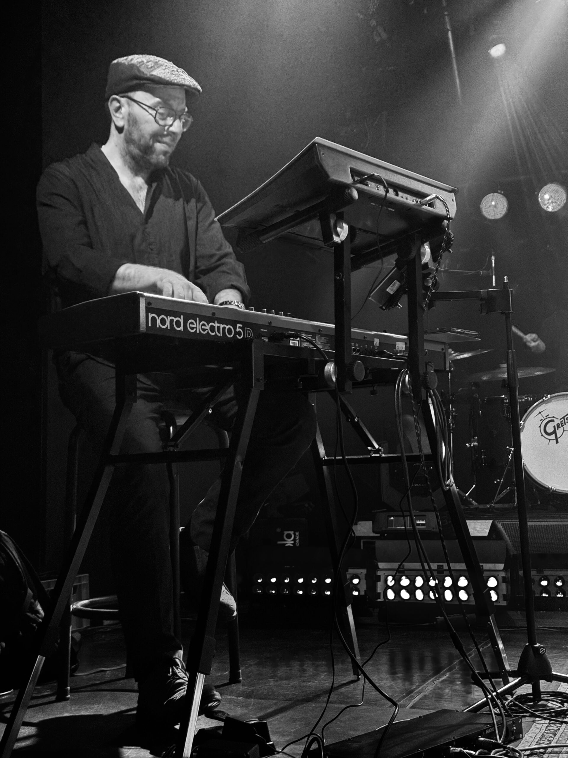 Gert Kapo creates atmospheric spaces between tradition and modernity. His piano harmonies and synth textures are essential to the ensemble’s cinematic and orchestral dimension, especially in metamorphose.